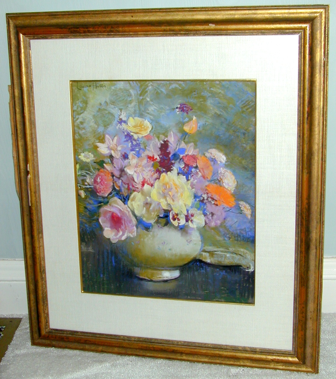 Mixed Flowers in Pottery Bowl Pastel on paper, 9.5 x 12.5 inches Frame: Light White, 18 x 21 inches Signed Lower-Left on Front Also see High Resolution Photo (399k) |