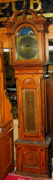 DURFEE TALL CLOCK2 Train Movement with Carved Oak Case and Brass Dial